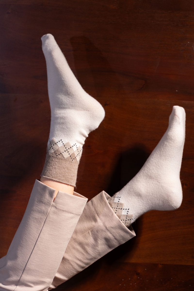 | 寒い季節にもスタイリッシュに過ごせる、イタリア製ファンシーソックス。 足元をしっかり暖める厚手仕様ながら、洗練されたデザインで品よく決まります。 上部にはクラシカルなアーガイル柄をあしらい、スニーカーやローファーとの相性も抜群。 一日中快適な履き心地をキープします。 同柄ハイソックスもございます。 |