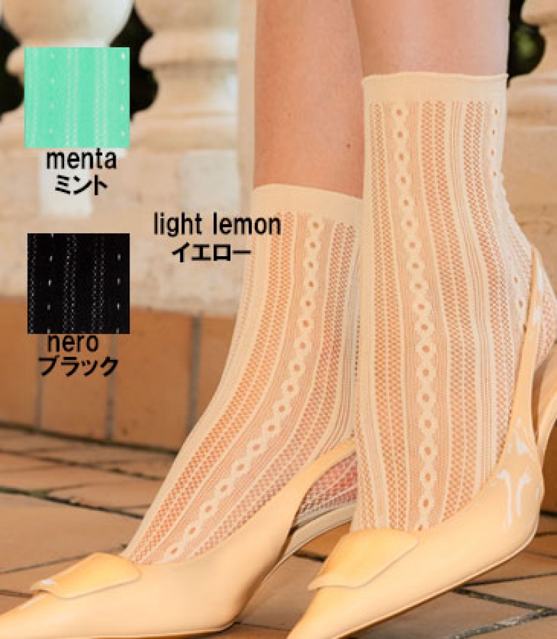 | 光のストライプを纏う。透かし編みが描く、春の叙情詩 繊細な幾何学模様と縦ラインを組み合わせた MORA(モーラ) シアーな質感の中に浮かび上がる複雑な編み地が、足元に奥行きのある気品をもたらします。 肌を美しく透かすデザインは、春の軽やかなパンプスやサンダルと理想的なハーモニーを奏でます。 一歩踏み出すたびに光を捉え、洗練された大人のエレガンスを静かに主張する一足です。 |